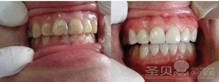 洁牙前后的对比。