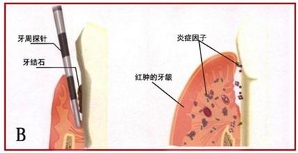 2、牙石:日常进食时,在我们咀嚼中,由于机械刺激,牙石上的菌斑与牙龈密切接触,引发牙龈发炎。