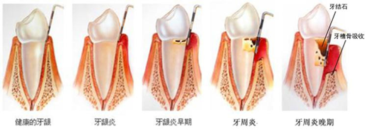 4、敏感期:早期青春期、月经期或妊娠期,所致体内分泌激素的变化,会改变牙周组织对病源性刺激因素的反应性,从而加重牙龈的炎症变化,一般在以上三个时期,都很容易发生牙龈炎。